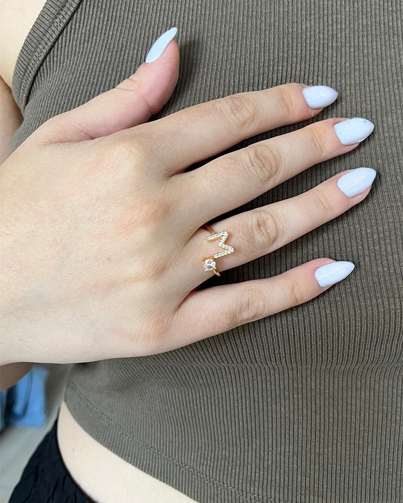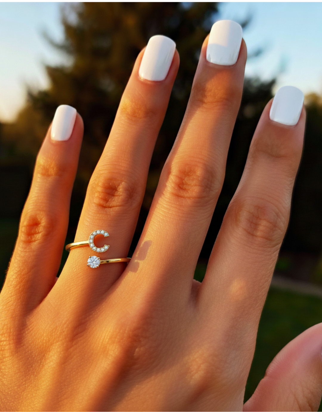 Delicado pero duradero, este anillo presenta una banda delgada y pulida y una inicial brillante que capta la luz sin esfuerzo. Hecho de acero inoxidable y circonio, es hipoalergénico, resistente al agua y a la oxidación, y no manchará tu piel. Lo suficientemente cómodo para usar a diario, lo suficientemente significativo para toda la vida.