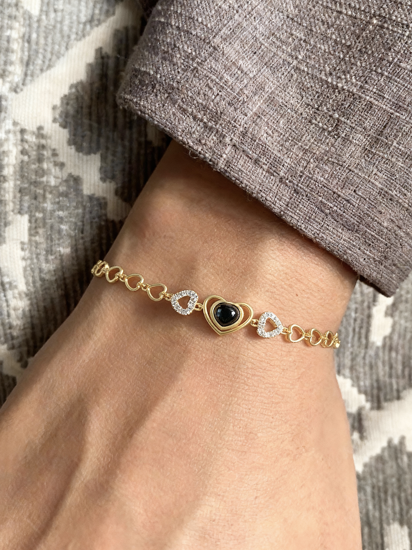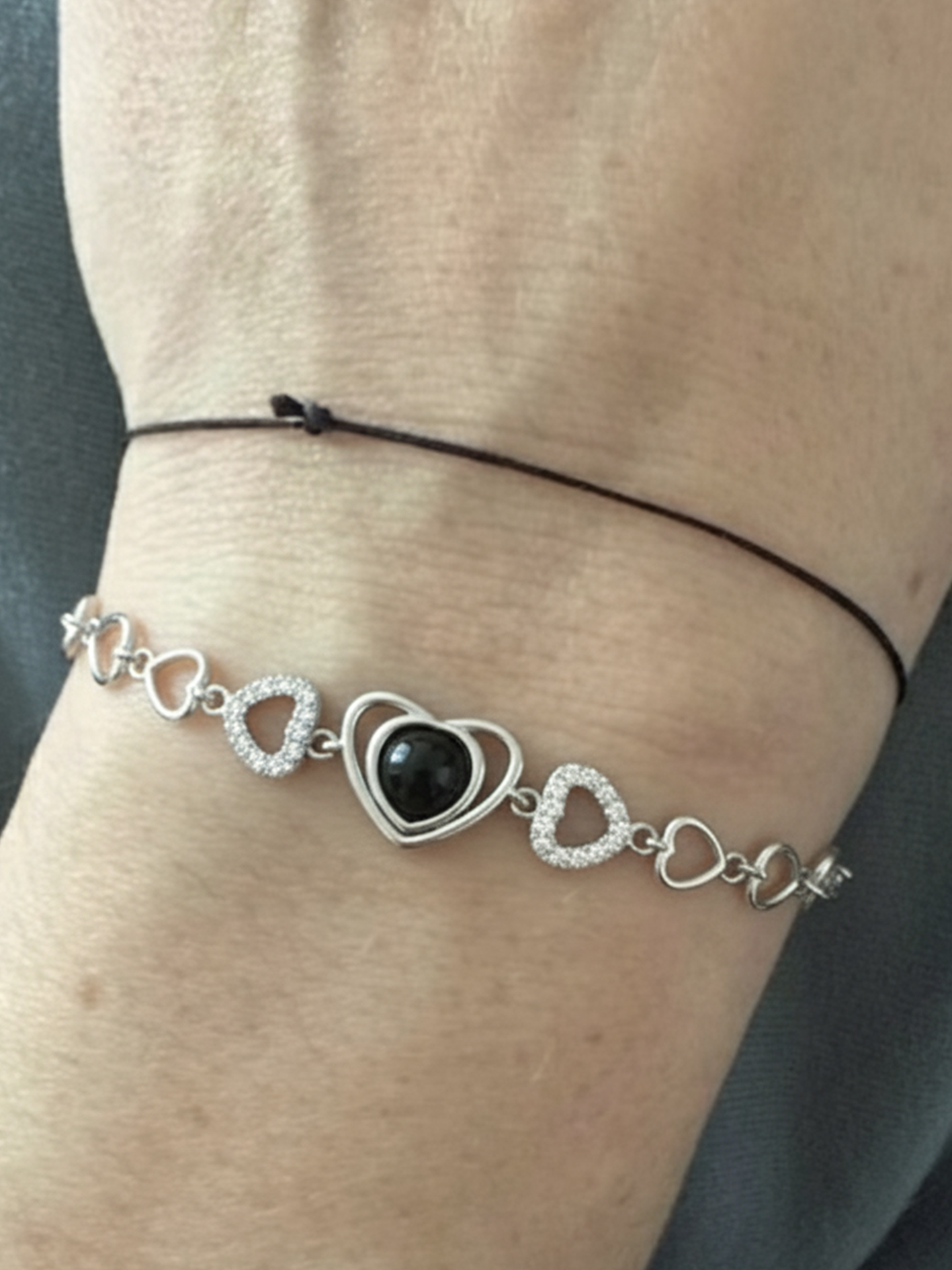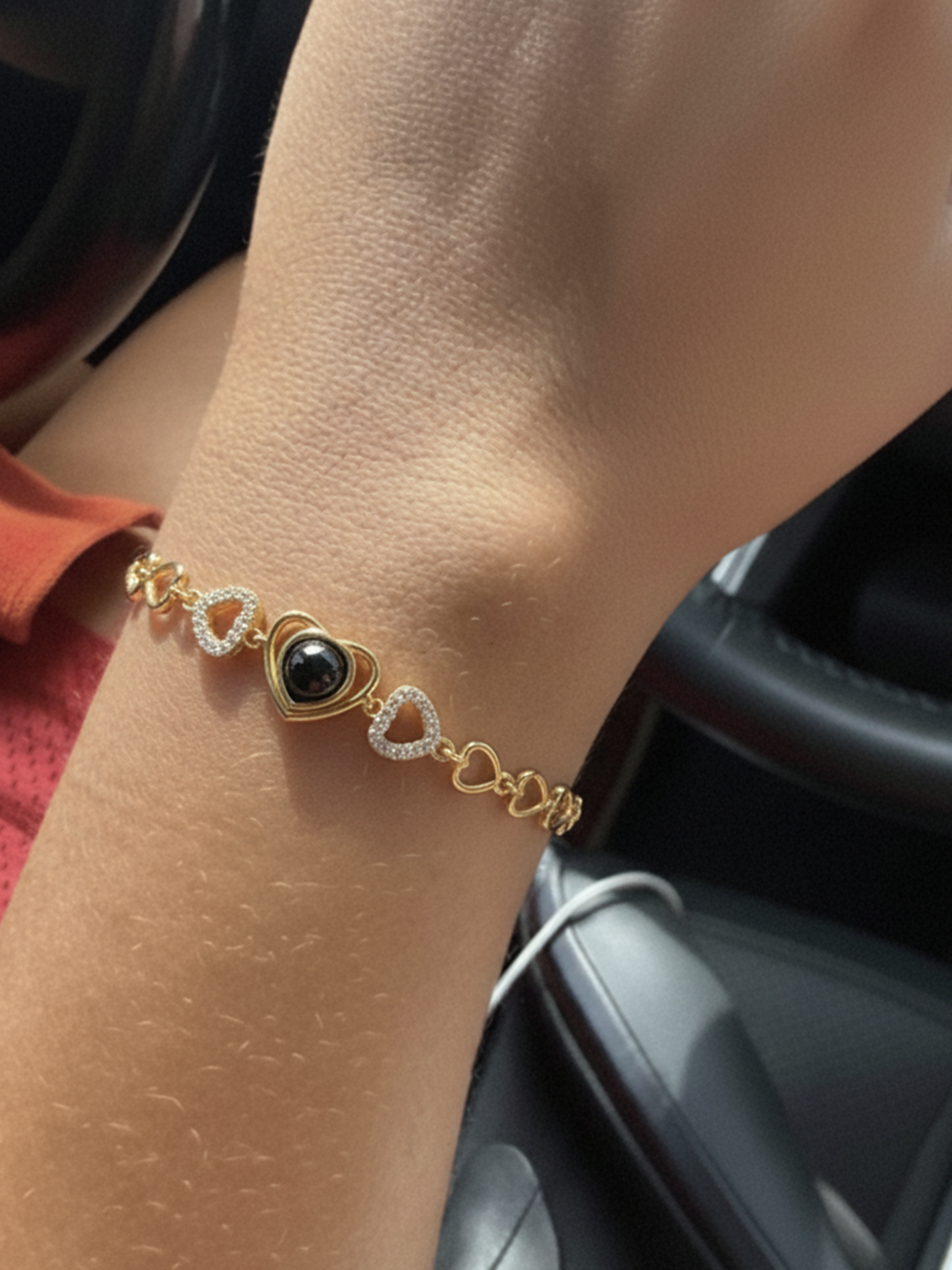 Una foto secreta, revelada por la luz. Nuestros Pulseras de Proyección transforman tu recuerdo favorito en arte portátil. El elegante colgante oculta una imagen personalizada que se proyecta cuando se ilumina desde atrás: un retrato, un momento, una historia de amor.