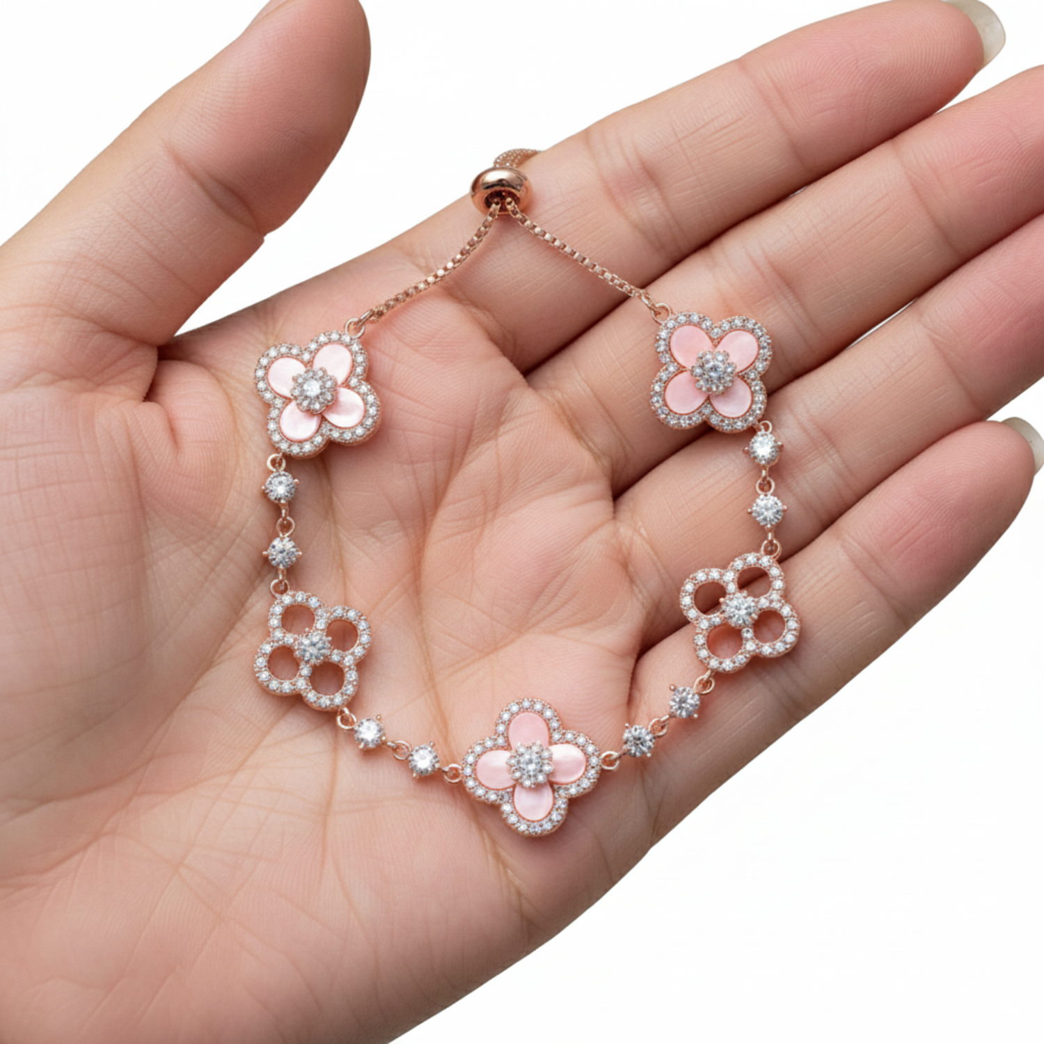 Su diseño, inspirado en jardines preciosos, combina armoniosamente el oro rosa y detalles perlados, creando una pieza que es a la vez elegante y romántica. Perfecto para ocasiones especiales o para añadir un toque sofisticado al uso diario, el Diamond Blossom es el accesorio ideal para quienes aman combinar feminidad con lujo discreto.